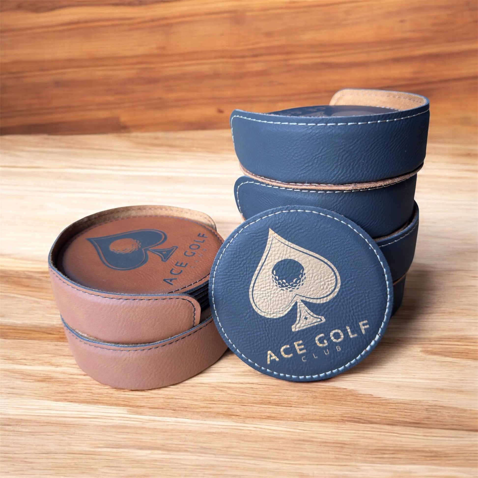 The ideal choice for corporate gifts! Show your appreciation to clients or employees with our set of six custom leather coasters. These personalized coasters, featuring your logo or slogan, make for a memorable and practical promotional item. Perfect for boosting brand awareness or celebrating a company event, they’re a gift that people will actually want to keep.