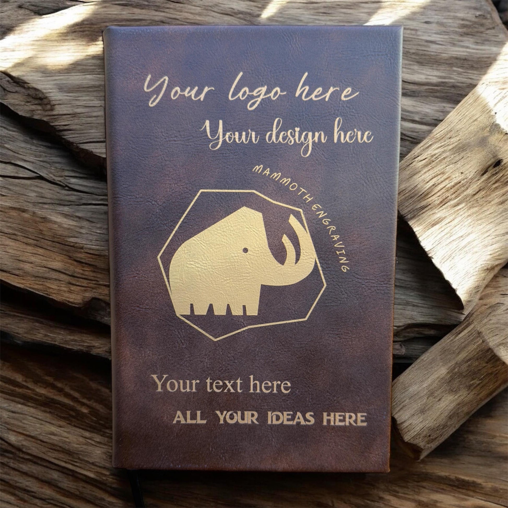 Perfect gift for travelers, writers, engaged couples, or as a special wedding keepsake! Features a laser-engraved leatherette vegan journal cover—no vinyl stickers here! Engraving is durable, won’t wear off, and resists stains from oils and everyday use. ABOUT OUR LEATHERETTE JOURNAL ✦ Personalized-Laser Engraved Leatherette Journal! 112 lined pages Black Satin Ribbon Bookmark Approx. 5 1/4" x 8 1/4" x 3/4" Material: Leatherette (Engraves Perfect) Color Options: Pink, Gray, Brown/Gold ✦ This item is professionally engraving by me in my studio ✦ Our high-quality engraving is achieved using a professional-grade laser in our studio, ensuring that every design is incredibly detailed. The engravings are permanent, meaning they won’t fade, peel, or crack over time. ✦ Simply send your design via Etsy conversation after placing your order, or email us at customammoth@gmail.com. SHIPPING TIME ✦ Shipping: Delivery in 1 to 3 business days (Priority mail) ✦ We package all of our journals safely in a form fitting foam so that your custom journals will not move around while shipping! ✦ We will replace the journal if it is damaged in transit. If you have a good idea for design, let me know and I can design it for you. Text me here or customammoth@gmail.com If you need any assistance ordering or have any questions please feel free to ask! We believe that you will absolutely love our high-quality personalized journals! Follow us @mammoth_engraving on Instagram !! Thank you ❤