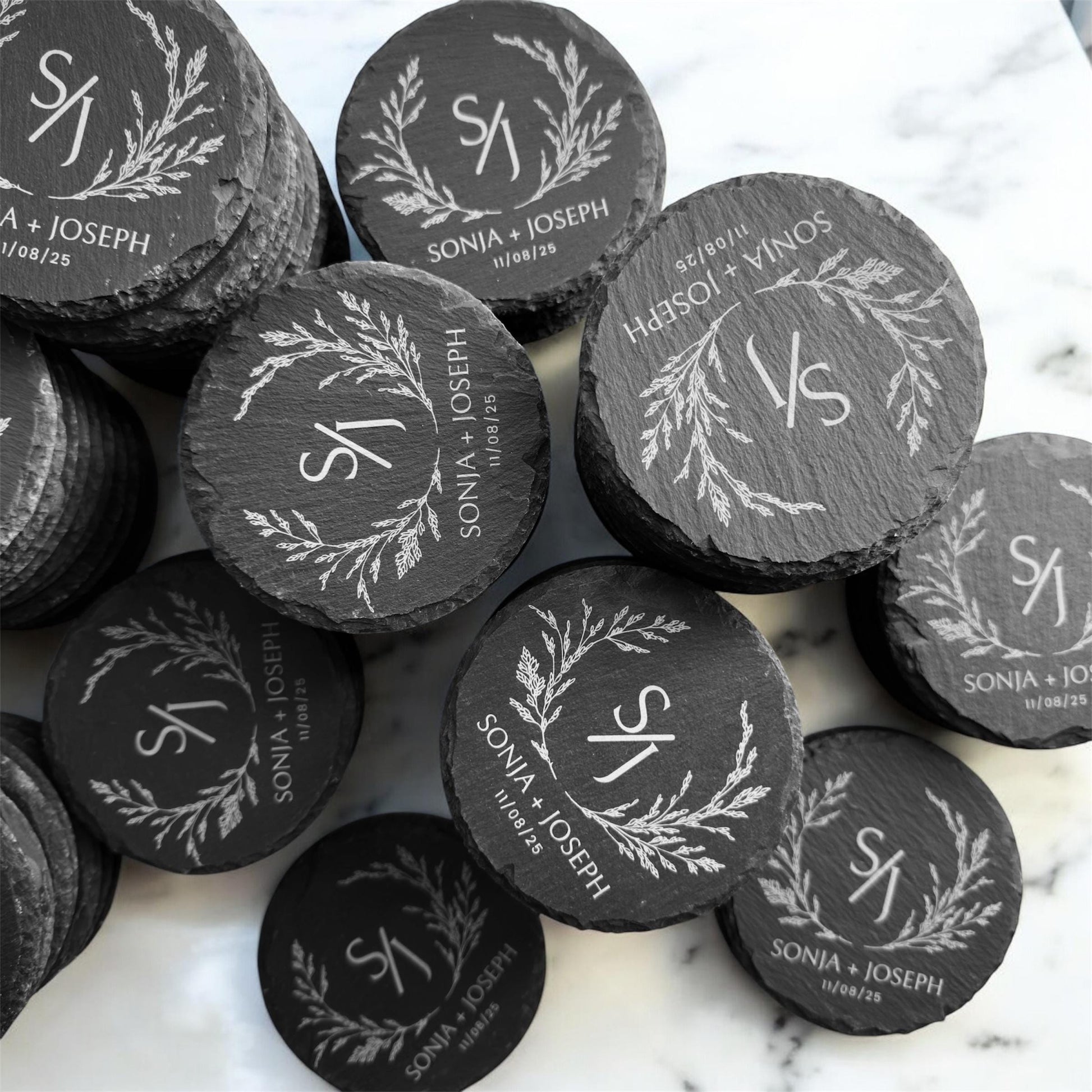 Personalized wedding slate coasters are the perfect keepsake for your special day. Made from high-quality natural slate, these custom coasters can feature your names, wedding date, or initials, making them a unique addition to your wedding decor. Ideal as wedding favors, table settings, or gifts for guests, these rustic coasters combine elegance and functionality. Choose custom designs to match your wedding theme and create a lasting memory of your celebration. Perfect for anniversaries, engagements, or bridal showers too!